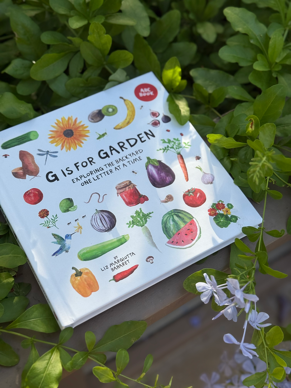 "G is for Garden" makes learning the alphabet a joyful adventure. Each hand-painted letter is paired with vibrant fruits, vegetables, blooming plants, and the lively creatures that call the garden home. This colorful, playful book teaches ABCs and also sparks curiosity, creativity, and a love for nature. Hopefully it inspires you and your little ones to grow an edible garden together.